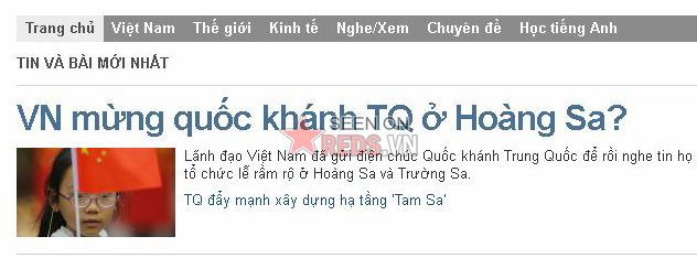 Sapo của bài viết: “Lãnh đạo Việt Nam đã gửi điện chúc mừng ngày Quốc khánh của nước Cộng hòa Nhân dân Trung Hoa để rồi nhận tin Trung Quốc tổ chức Quốc khánh rầm rộ ở Tam Sa trên quần đảo Hoàng Sa mà Việt Nam tuyên bố chủ quyền”.